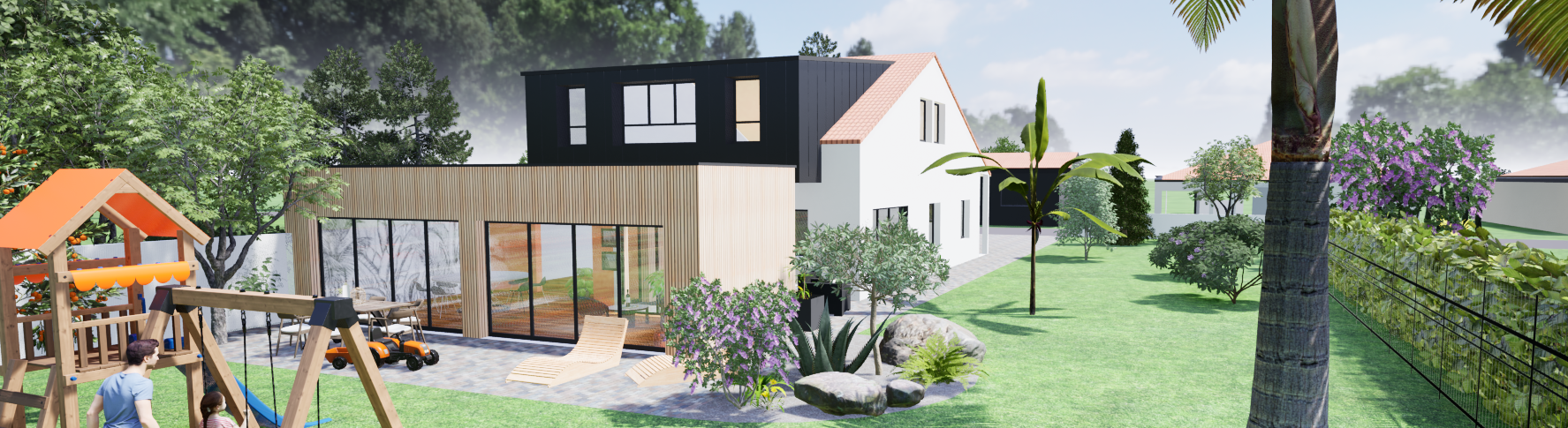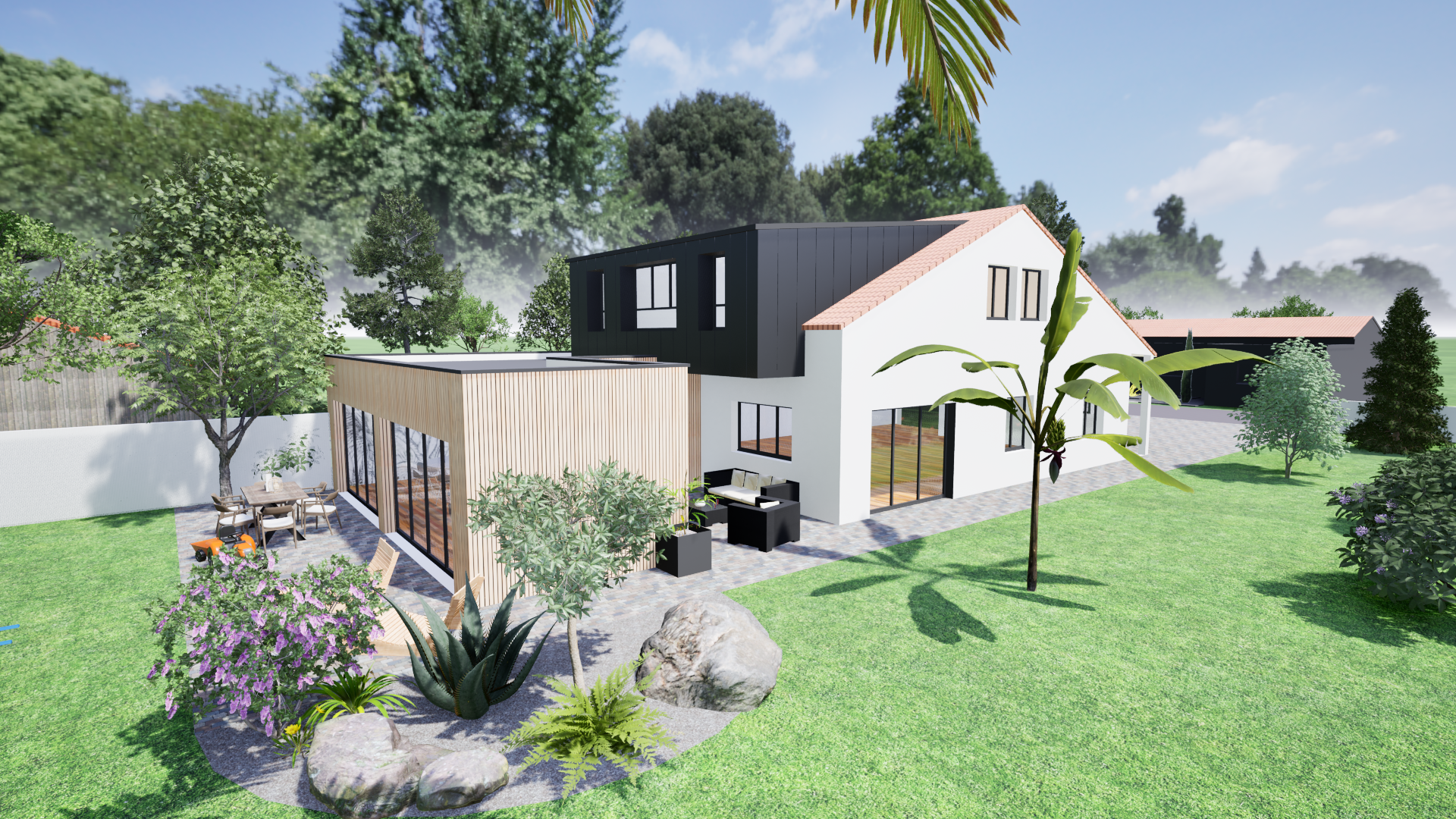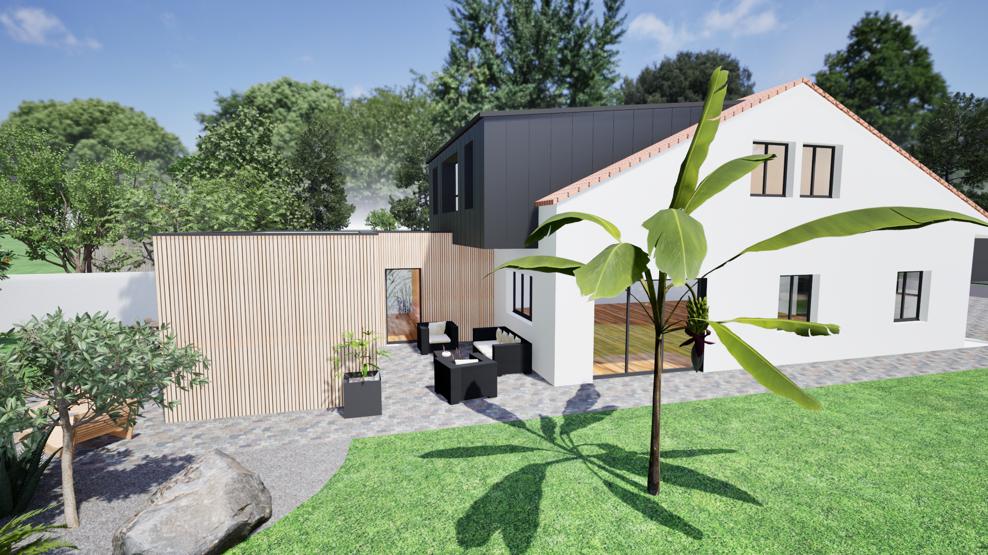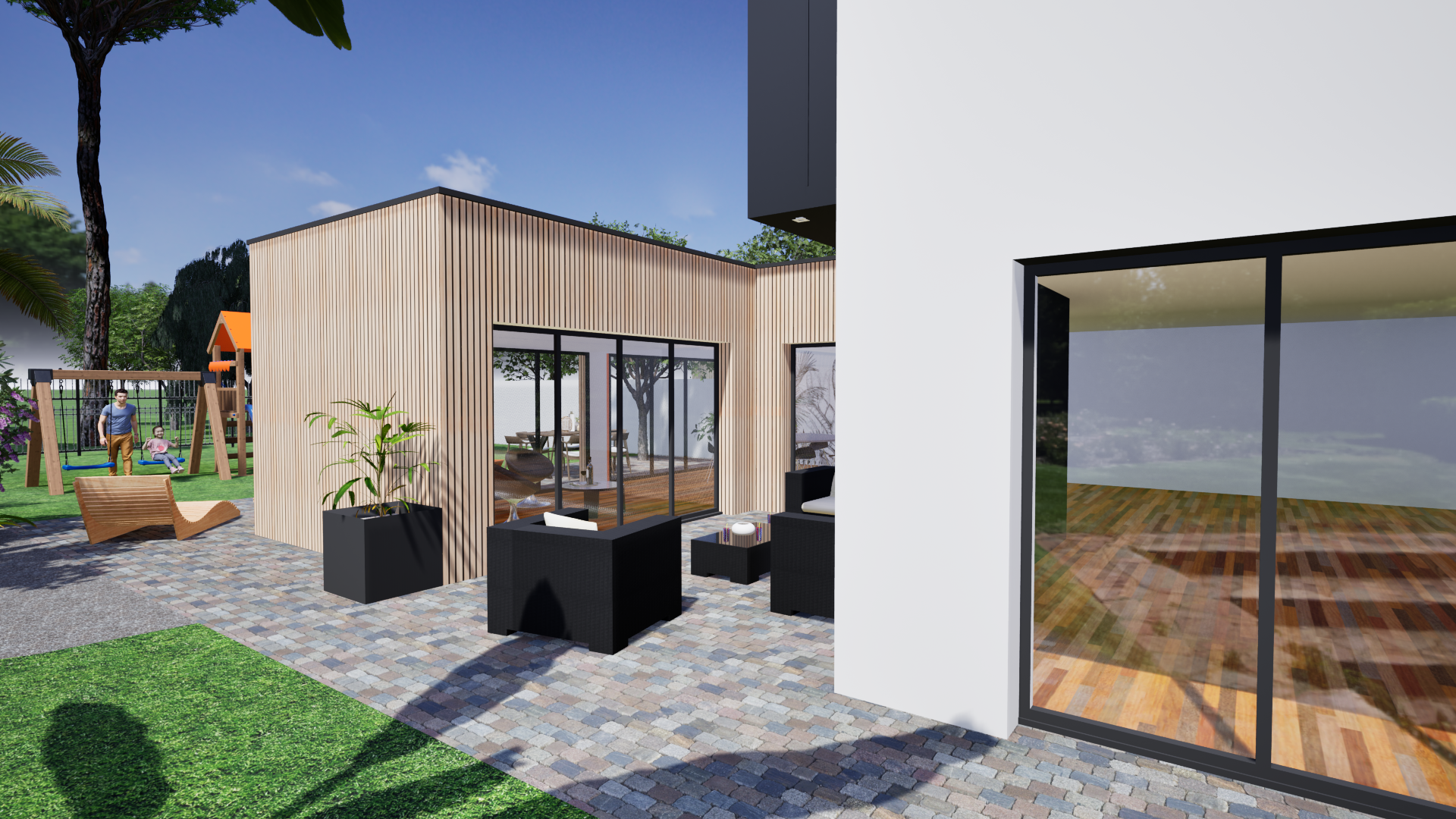Rendus 3D réalistes pour permettre aux clients de se projeter dans leur future extension.